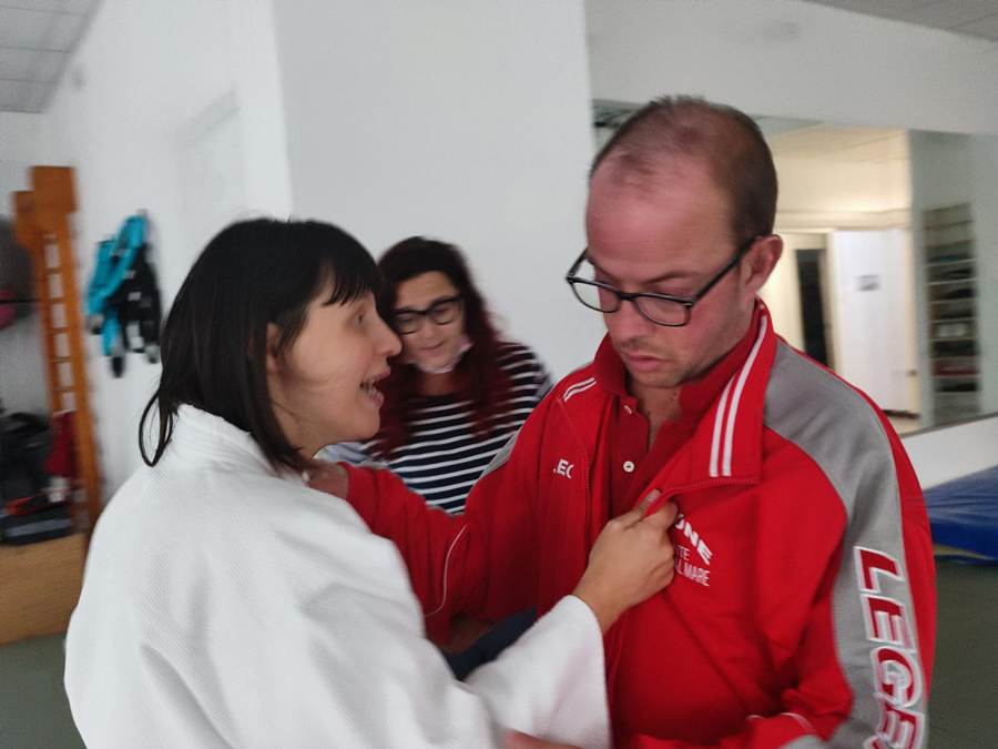 Il judo è uno degli sport che maggiormente può recare beneficio ai portatori di disabilità psichica. Anzitutto, un notevole vantaggio può consistere nel fatto che il judo migliora lo sviluppo e la coordinazione muscolare, aumenta la resistenza e giova alla funzione dell’equilibrio. I benefici acquisiti dai disabili psichici nella pratica del judo vengono poi trasferiti ed utilizzati nella vita quotidiana. In secondo luogo, essendo il judo una pratica sportiva basata proprio sul contatto fisico fra due atleti, esso viene a favorire quella ricerca di contatto così frequentemente espressa e ricercata da molti disabili psichici, specie da quelli affetti da sindrome di Down e così allontanati dalla sindrome autistica. Non va infatti dimenticato come in tanti casi di insufficienza mentale la ricerca del contatto fisico possa quasi vicariare un rapporto di relazione spesso assai carente fra gli stessi disabili o fra disabili e soggetti normali. Il judo può, quindi, efficacemente agire come strumento di reinserimento sociale del disabile psichico. A seconda del grado di insufficienza mentale (lieve, medio, grave), i judoka verranno suddivisi in classi di diverso livello tecnico, elemento fondamentale perché sia a loro consentita una attiva partecipazione sia agli allenamenti che alle competizioni. IL judo è un modo diverso e costruttivo per permettere ai ragazzi disabili di entrare a far parte della società, pur con qualche difficoltà in più, ma con tanta voglia di imparare e mettersi in gioco, per aiutarli ad esprimere la propria personalità. Attraverso lo sport hanno la possibilità di mettere in gioco le loro capacità e lasciare per un attimo da parte la propria disabilità.
